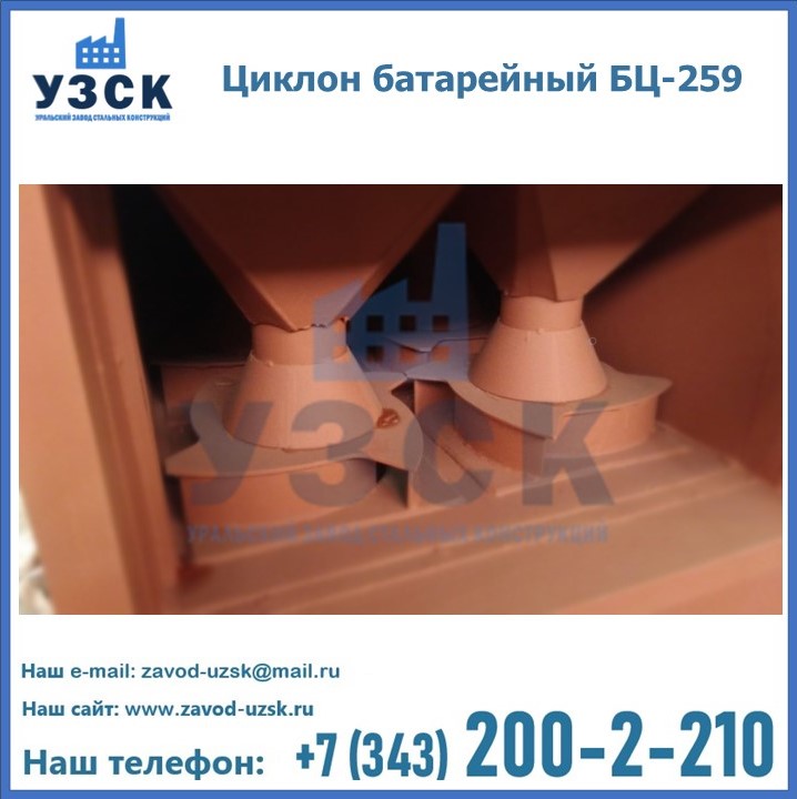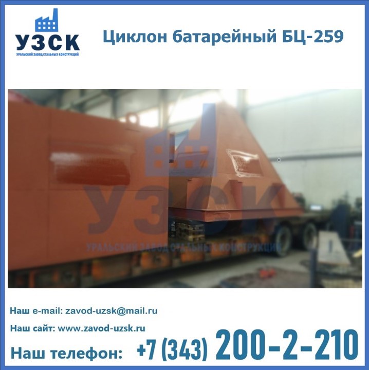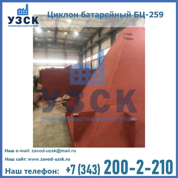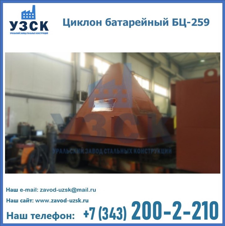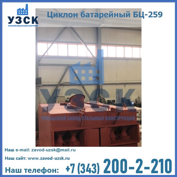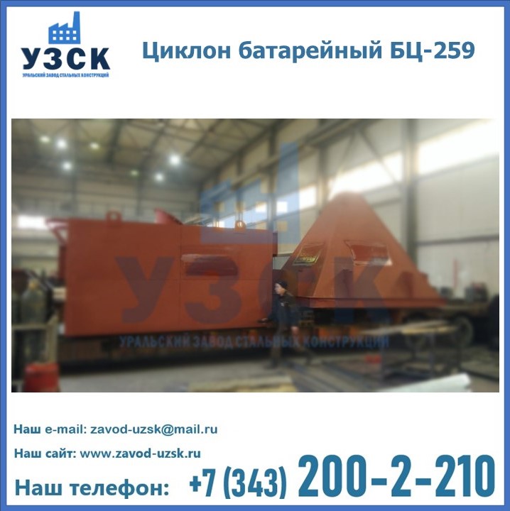 Приобрести качественное оборудование, в том числе, циклоны БЦ-259, можно в компании УЗСК в Северске. Мы предлагаем долговечную и надежную продукцию по приемлемой цене. Заказать и купить циклоны или другие изделия высокого качества можно через сайт Уральского Завода Стальных Конструкций, или позвонив по указанному в разделе «Контакты» телефону.