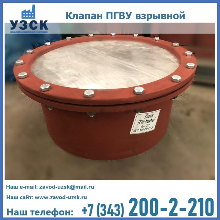 Взрывной предохранительный клапан ПГВУ в Северске оборудуется в виде сквозного отверстия (окна) на взрывоопасном элементе энергетических установок. Такое окно закрывается специальной мембраной, а также оснащается створками или материалом, способным легко разрушиться в результате взрыва, что позволяет избежать высокого давления, образуемого взрывом.